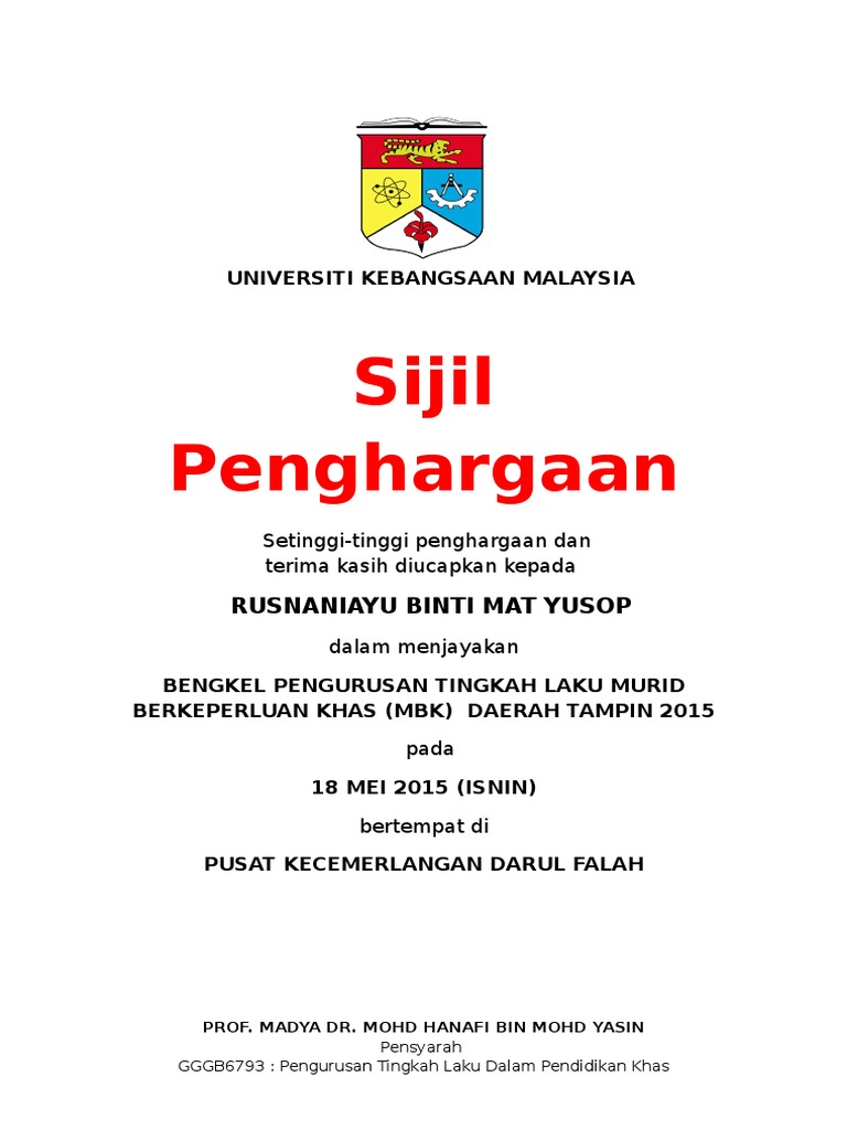Sijil Penghargaan Universiti Kebangsaan Malaysia from imgv2-1-f.scribdassets.com Cipta sijil bagi segala jenis anugerah dengan pembuat sijil seret dan lepas canva yang percuma. 8.3.2 sijil penghargaan kepada para penceramah disediakan oleh sekolah penganjur. Contextual translation of sijil penghargaan dianugerahkan kepada pekerja into english. Unduh atau download contoh format piagam penghargaan untuk kejuaraan lomba maupun kegiatan osis, juara kelas pramuka, olahraga futsal maupun dalam bentuk kosong, tinggal edit isi sesuai dengan yang diperlukan dalam format doc ms word office. Make a certificate of appreciation. Hal ehwal & pembangunan pelajar 1 februari 1980 puan faridah binti hashim pembantu. Contoh surat terima kasih atas sumbangan. Penghargaan bertajuk indonesia top digital public relation award (itdpa) 2018 gelar pada kamis (25/1).