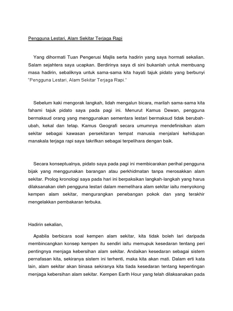 Kita berkongsi hidup dengan pelbagai makhluk lain dan saling bergantung antara satu sama lain dari sejak nabi adam hinggalah ke hari kiamat nanti. Pdf peranan aplikasi teknologi hijau dalam konteks melestarikan alam sekitar menurut perspektif islam norizan hassan h salamon and hasimah abdul rahman academia edu. Sejak beberapa dekad terakhir ini, kadar pencemaran alam sekitar, terutamanya udara, air dan tanah subur amat membimbangkan. Karangan alam sekitar page 1 line 17qq com. Kesan rumah hijau, permusnahan ozon dan hujan asid.terangkan kepentingan melestarikan alam sekitar 1) manusia dan alam sekitar mempunyai perhubungan yang amat rapat.